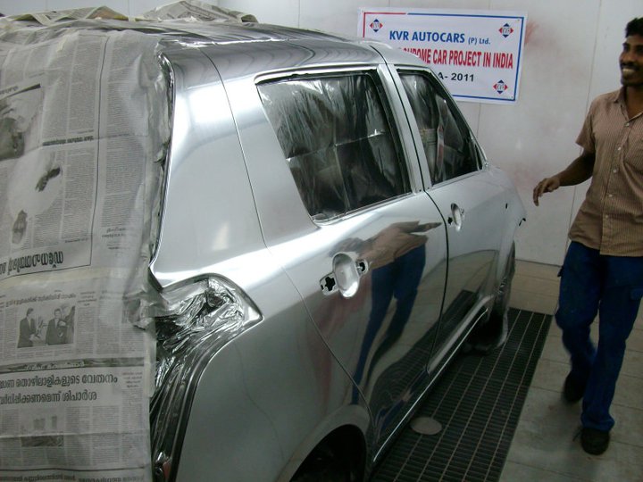Die Firma Danioth Lackierungen wurde nach Indien eingeladen um das erste Chrom Auto direkt vor Ort zu lackieren.
